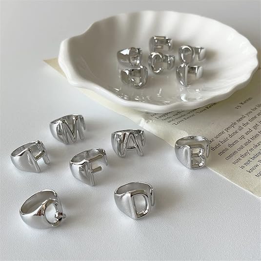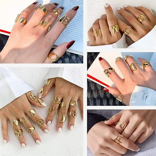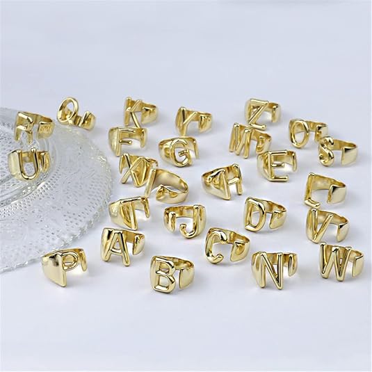 • Letter Rings for Women: Adjustable size, made of copper/brass, comfortably fits all finger sizes.